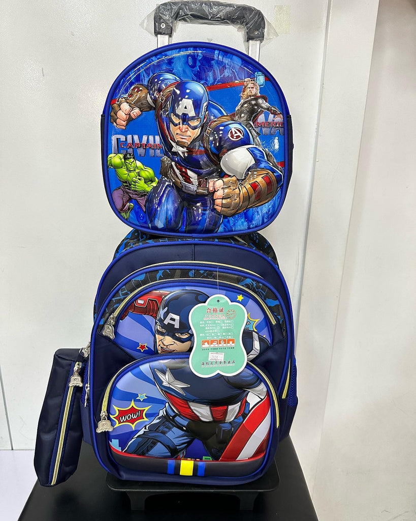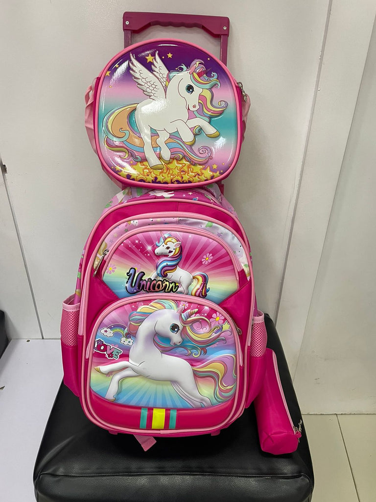 3-in-1 Contains trolley backpack, lunch bag and pencil pouch.