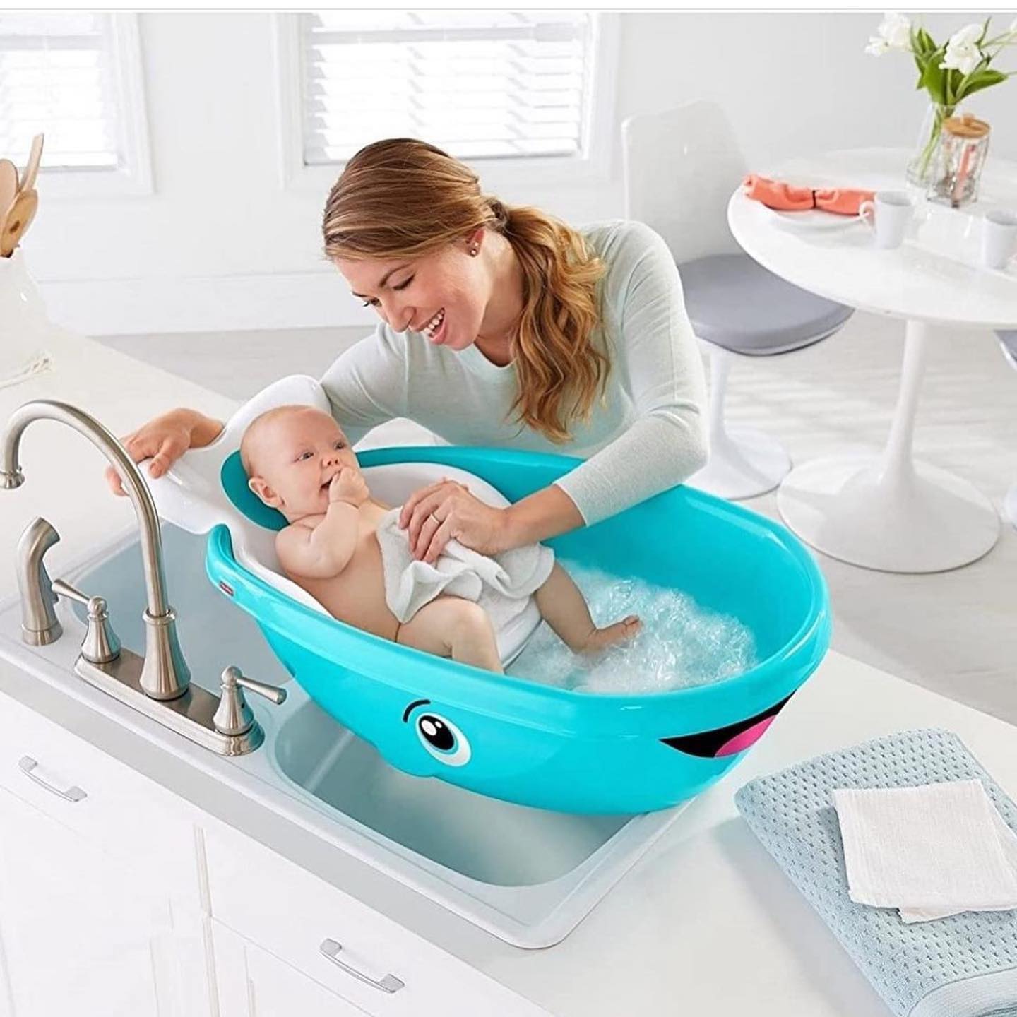 • Re-moveable baby seat to add even more room on the non-slip surface for toddler bathing