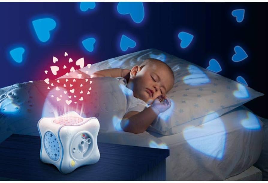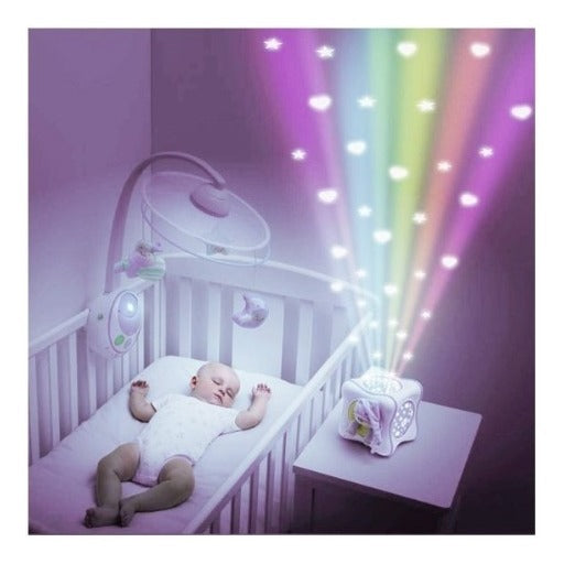 - A projector that allows up to 96 different combinations of projections, colors, and directions for a relaxing experience for babies.